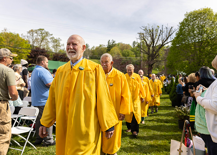 In recognition of this historic occasion, a new Commencement tradition was born: Golden Graduates. The Golden Graduates are alumni marking their 50th graduation anniversary, and each year a new cohort will join the ceremony in recognition of that important milestone.
