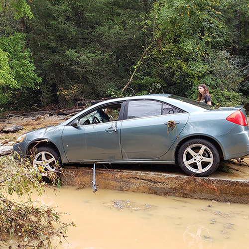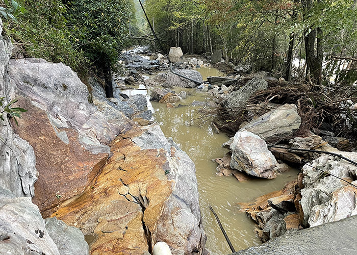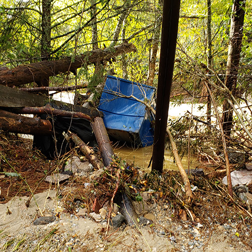 New-ish to living in the mountains, but a lifelong lover and visitor, I was not particularly concerned upon hearing Helene might come up through western North Carolina in late September. I thought, “We are in the mountains, the mountains block the storm winds, yeah we’ll get some rain, the rivers will run a little high and turn brown, maybe some wind….” Well, the rest is history.